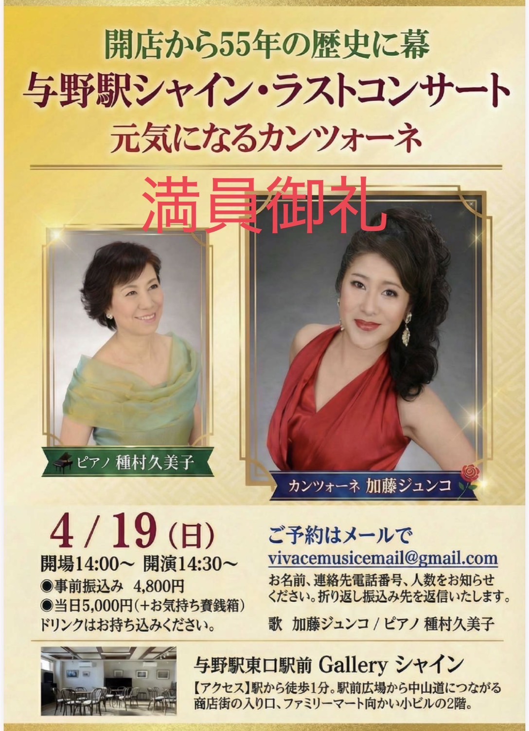 ご予約:vivacemusicemail@gmail.com